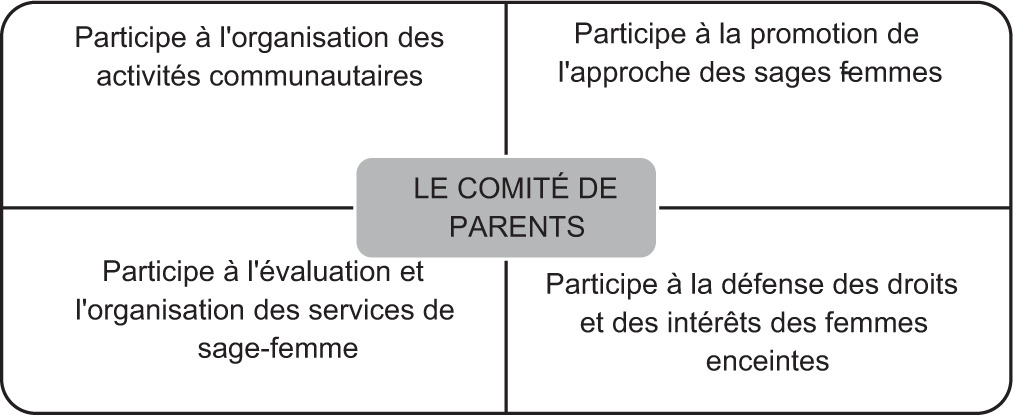 L’analyse montre que les répondantes conçoivent et actualisent la participation des comités dans quatre sphères : l’organisation des activités communautaires, la promotion de l’approche des sages-femmes, l’évaluation et l’organisation des services de sage-femme, les représentations pour la défense des droits des femmes enceintes.
