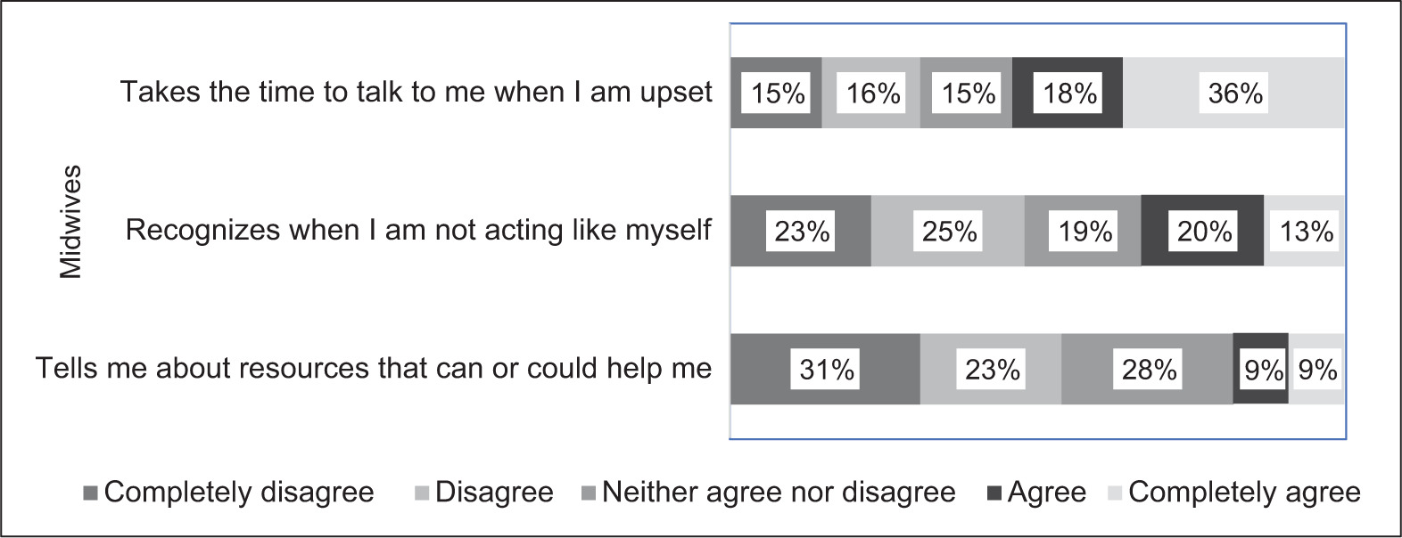 As shown next, our survey results support our qualitative findings related to midwives perceived mental health support from management/supervisors (Figure 2).
